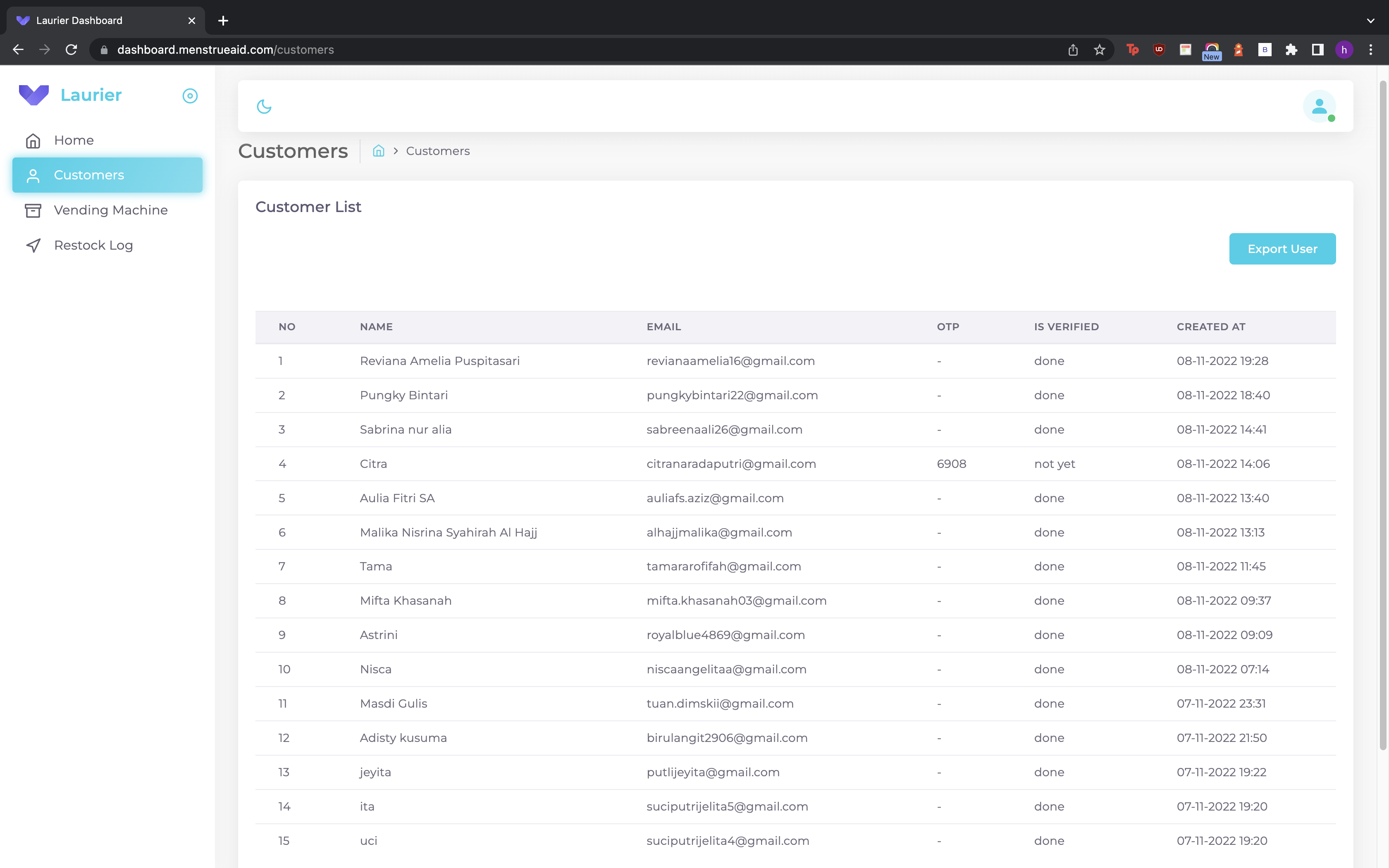 Description : a vending machine where users can pick up these products for free by registering first. The product in this vending machine is sanitary napkin. User can only register his email once and the email cannot be used again.